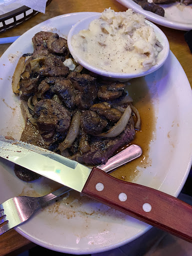 Read moreIt wasn't a horrible experience, just weird. We ordered the kids cheeseburger meal for my 2 year old well ahead of the meals for the adults. 15 mins later they brought out her food and all seemed good. However, as soon as she took a bite you could tell the burger was raw. Not just undercooked...like blue...raw. Our waitress was very nice and immediately apologized and said she'd have it remade. We waited probably 10 mins for them to bring it back out and nothing. The waitress came back and apologized and said she had heard the manager tell the kitchen staff the wait was getting too long for a refire and assured us we'd have the food soon. 10-15 more mins go by and still nothing. Finally, they bring the cheeseburgers along with the food for the rest of the table. Burgers looked fine, but myself and another guest got the prime rib which they served with maybe a teaspoon of au jus. I requested more au jus from our waitress and she went to get it and then disappeared for ten mins before coming back to our table apologizing profusely telling us she had asked the kitchen for it 3 times and they just weren't giving it to her. So we ate our food without it and got the bill. I noticed they didn't take the kids meal off our bill so I brought it up to our waitress who said she would go talk to her manager. The manager walked over and said she "didn't really know what had gone on but wanted to apologize". I can see her holding a free entree coupon in her hand. I tell her "Hey, you guys are busy not the end of the world as long as you take the kids meal off the bill that's fine". As soon as I said that, the manager literally looks at me, folds the coupon in half in her hand and then slips it into her pocket like I wouldn't notice and just walks away. Granted, I did say we were fine if they just took the kids meal off the bill and they did (after we complained)...but to come to the table with a coupon in her hand and then slyly try and conceal the coupon before slipping it into her pocket was a weird flex. Never even apologized for not bringing out the au jus. đ Don't think I've ever had an encounter with a manager at a restaurant like that before. It wasn't that she was rude, just didn't really seem like she cared that our two year old was served raw hamburger and had to wait 45 mins to an hour to eat. Just a very weird customer service approach. Our waitress was...