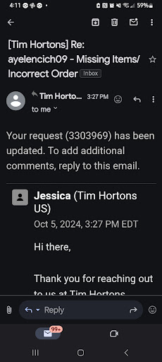 Read moreI'm not sure if the owner needs to reconsider who they have as their general manager or if the Gm needs to consider who they have as managers! I have been here 4 times total including tonight! I always get the Same thing XL 3×3 with a shot of hazelnut and if my daughter is with me she gets a small hot chocolate. Well the two times I have bought my coffee here there hasn't been any sugar in them and the last hot chocolate tasted like dirt. I try to tell them in the drive thru and its always been young kids. The response i was given a laugh to my face and was told sorry and a window shut in my face. Well last night on the way home from work I wanted soup so I thought I'd give this location one more try. I ordered the chicken noodle and a Tuscan chicken sandwich. My soup was luke warm and my sandwich hand no grill marks and the cheese wasn't even melted! So I called I was told the grill doesnt work properly and then the soup was a different story until the guy I guess put his hand in it. Then believed me! So he writes me down for a replacement meal. I go there to get it tonight as I wait for 10 mins the soup and sandwich. I see 3 employees just standing around talking not doing a thing. I ask the girl in drive thru for a 10 pack of Tim bits while I'm waiting and she tells me they are out of everything but chocolate and plain. That was the end of that. Why are you paying these employees if they cant do their jobs? How can you advertise things and not have them? The young boy that's working on the table and handing out food with his gloves on is very unpleasant and just a smart ass! I will not go back here and I will be finding out who owns this Tim hortons and will be...