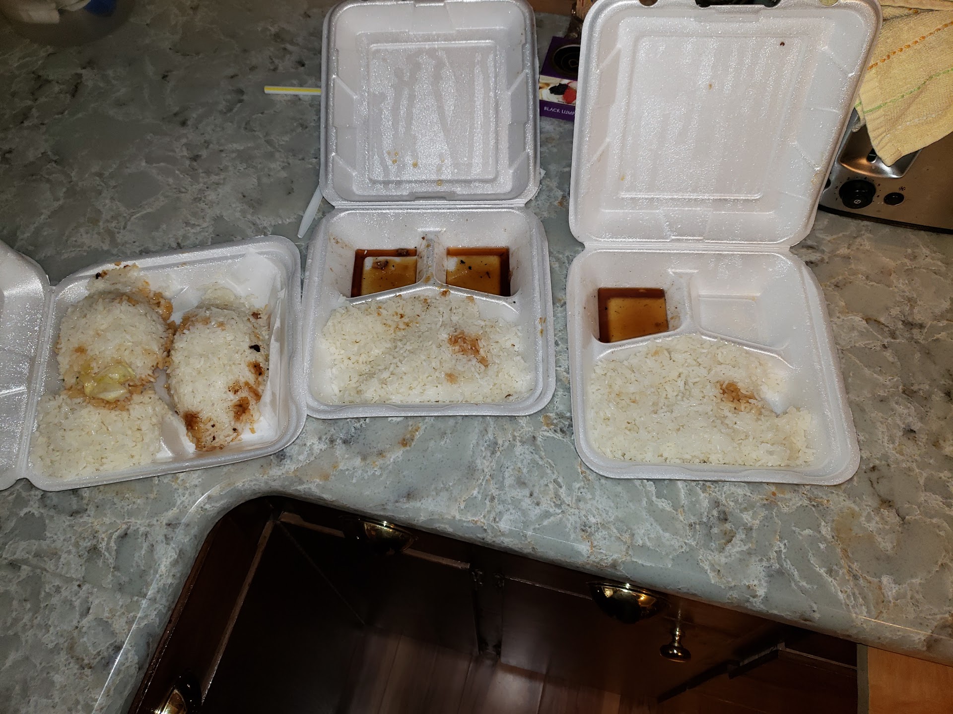-Rice was hard with no taste had very cold spots thru out.