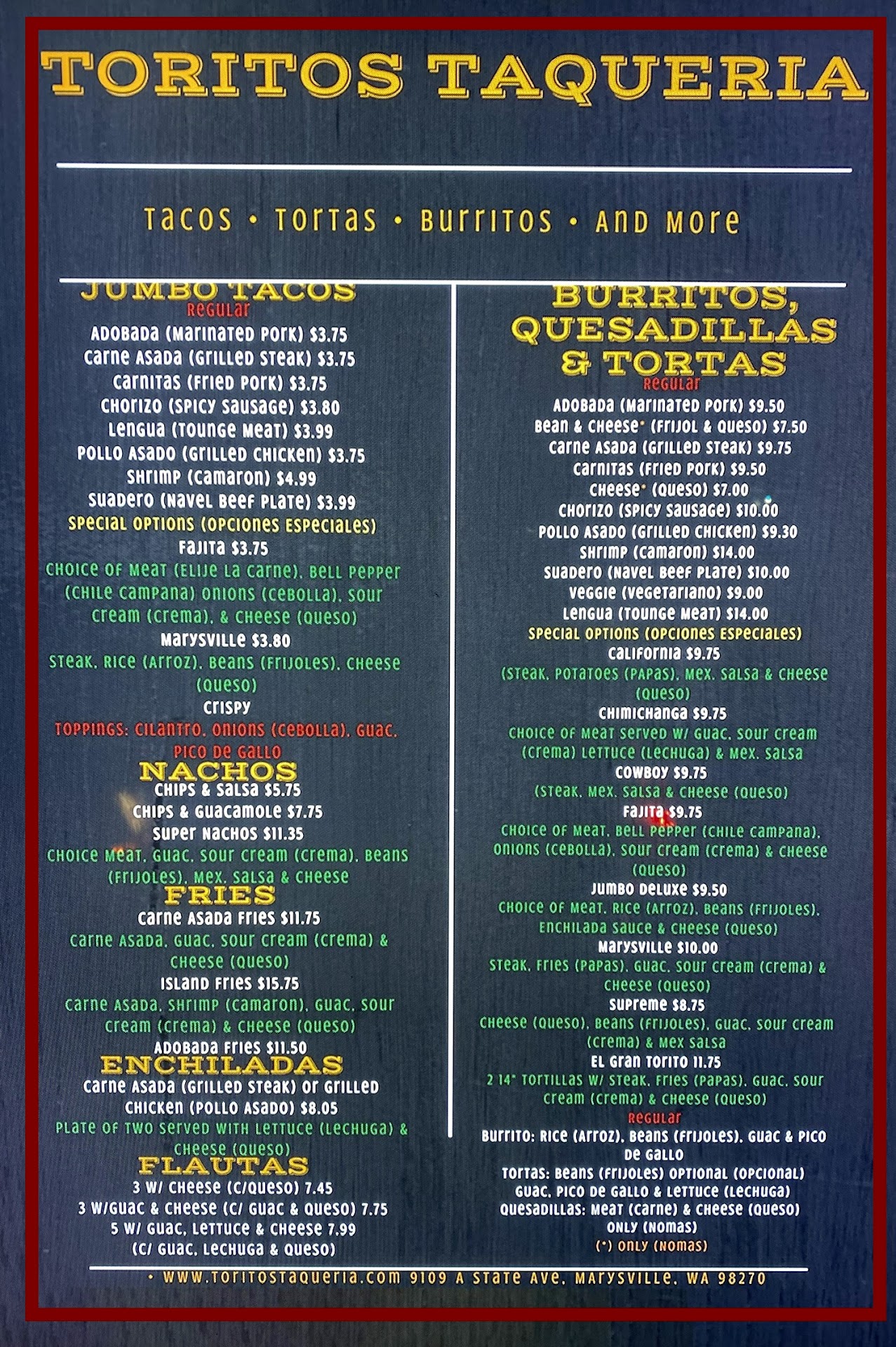 Read moreReally enjoyed our first stop to Toritos and it certainly won't be our last! Been driving by wanting to try them now for weeks and so glad we did. * If you are wanting a hard shell taco with ground beef and nasty melted American cheese yellow "queso", then go to Taco Bell... this is not that 🤦♂️*