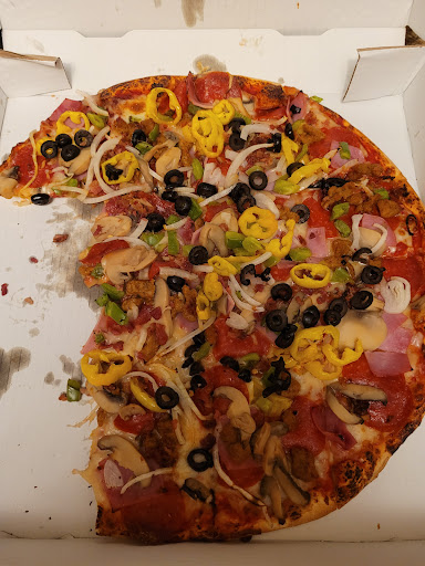 1 of 5 stars. Lately the crust hasnt been as crispy. One time my order had a bunch of black burnt remnants on the bottom of the pizza from a dirty pan. It ruined my pizza. I've had so many bad orders from here. My most recent order came half smashed. Their boxes are not the right size for their pizzas, often resulting in smashed up edges. Whenever I order a sub, the lettuce is bad. The lettuce comes soggy, ruining the sandwich. The dressing could also be much better than what it is. Sometimes when you order their pizza size that has thick crust, they send you a thin crust instead. Why do they charge a technology fee when you pay online and other companies don't? Can't they pick a better method to process their online payments? I've also gotten pizzas with so much grease on top that it ruined the crust. Ordered a taco pizza and the crust came undercooked. It was also soaked wet and soft nasty making my food inedible. I tipped the driver for awful food. I'm angry and done...