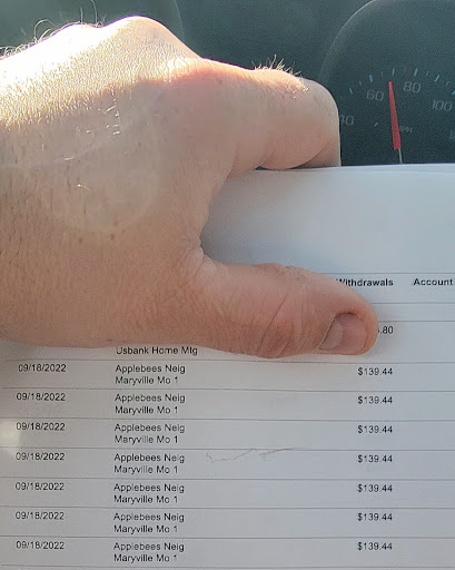 Ā Ā Ā Read moreSooo trying to be as nice as possible, I generally shrug off bad service as the place being busy........Oct 11 just after noon we swung into this location, which weve done numerous times as its convenient and generally fast in and out.......got sat fairly quick as the restaurant was by no means packed......server who was male took our orders along with queso and chips, generally served before the main course......sat a while chatting watching said server waiting on other patrons, not a problem, more time goes by, questioning the chip situation as there are 4-5 employees hovering around the bar, many minutes later the queso delivered 2 to 3 minutes to one main course being served.......my wife starts eating her food, im patiently watching our server go in and out of the kitchen, no more plates headed our direction, 3/4 of the way thru her eating chicken breast and mashed potatoes still no food........patience is running thin, weve literally never been served one plate at a time.......no server.........I approached the bar where the manager and a few other employees were standing and expressed we were in a bit of a time crunch and need the second plate of freaking food or just keep the damned thing since my wife was was literally finished with hers, the manager apologized and finished out the service for us, made the last plate and sent it in a to go box also removing the said late food from the bill......my issue is no one's perfect, I get it, the issue was the non schalant attitude of the server the whole freaking time we were there, chips served a minute before the one main course and never receiving the second plate until I literally walked up there to question where my food was........please don't complain when servers dont get a tip at all.......we are generous tippers and travel alot thus eat out alot, this by far did not require a tip at all, its called a "service" industry for a reason, our not ever going back to this restaurant will not by any means affect this particular chain restaurant, however, ya gotta do better especially in a town the size of maryville Missouri where most people know each other ........our server would probly be best not dealing with the public in a restaurant setting, and mind you they were not swamped...