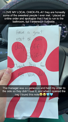 Ā Ā Ā Read more12/4/22 EDIT: Service at this Chick-fil-A is awful. The wait time in the drive-thru is unbelievable, and once in the line there's NO way out! Last night though topped any other visits wait time. I ordered quickly from a very friendly employee, but then I waited over 20 mins for food and another 10 mins in line after I received my food. Both lanes were at a stand still and did not move for 30 mins. Everyone in the other 11 cars behind the front 2, had been brought their orders however we could not get out. I finally called the manager on duty to inquire about the hold up. His answer, "they were waiting on their food." I said, my food is getting cold, can you move them to the side or have them pull around front, so the other 11 cars that have our food can get out of here? Another 2 mins, and he had one pull up and the other received their food. While I, and the other 11, took home cold food. Blah!