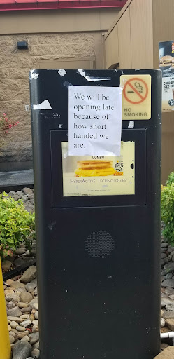 Read moreThis was the saddest fast food experience. There are possibly only 2 employees working the dinner "rush" tonight. I'm sure no one wants to barely make enough to live while also being subjected to furious customers who can't see the two people working are doing their best. I believe one was a manager and the other was a new employee who could only make drinks, it seemed. I can't say the food was bad or great, but the situation at this store is a common scene in this economy, unfortunately. If trickle down doesn't start trickling, the situation will only continue to worsen. Shame on this corporation to allow these two young, hard-working human beings be expected to work like this. And I guarantee they will neither one will be thriving at life while district managers ride them for lacking in sales (from what I saw was 6 losses in my 30min wait). When they should be given a bonus and a paid week off to recover from the stress they endured. And the business closed until they can provide adequate employees a decent wage. Anyways... it's not just this location or just this chain.... it's our greedy profitering elite at fault, and a mass amount of fearful citizens who don't feel they have the power to stop it. Let us eat cake will be their solution and they will see...