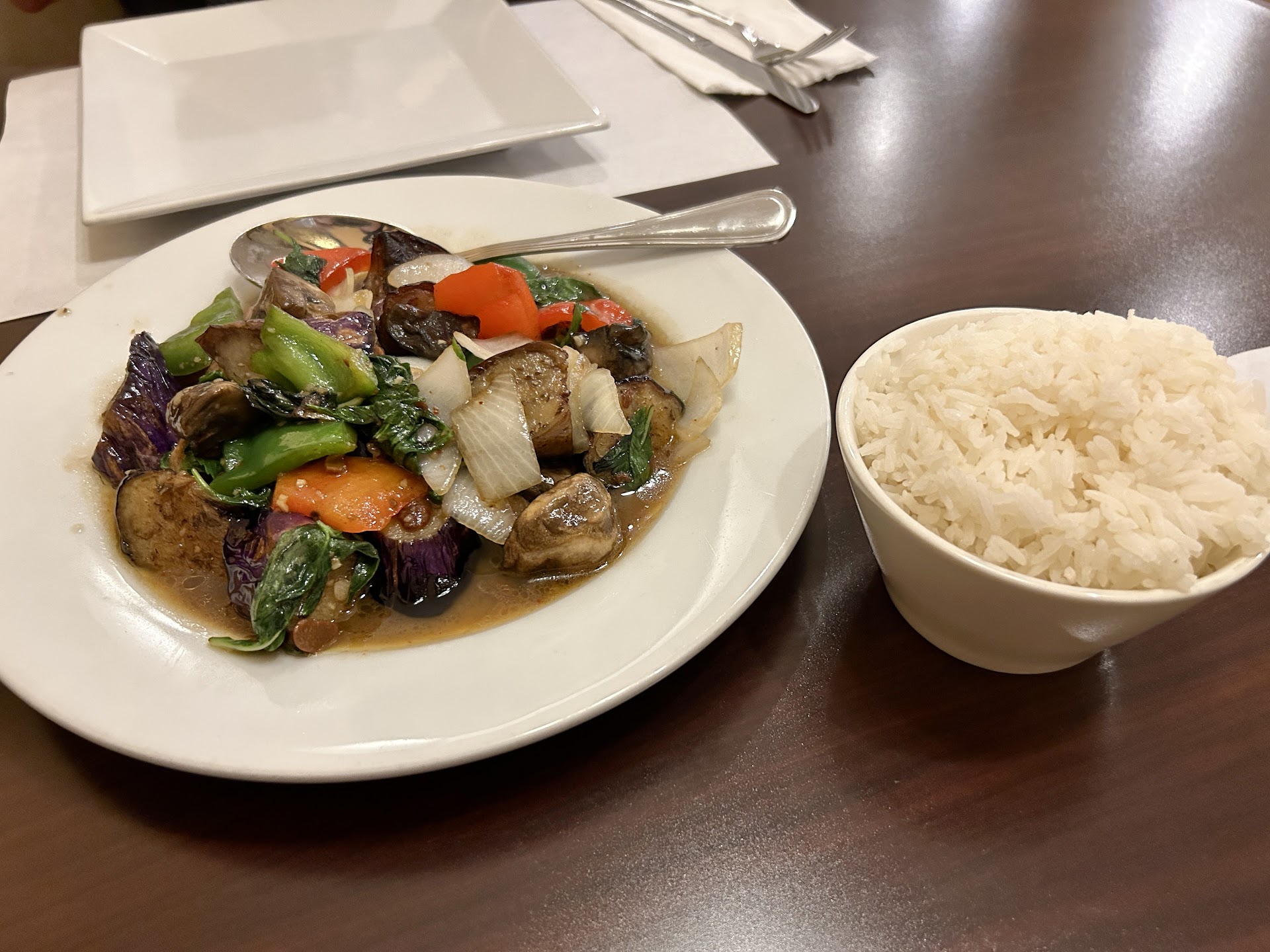 Read moreWe normally go to the Falmouth location but this location is bigger so we decided to go here. It was not busy at all and the staff was so sweet. The food is always tasty but knocked a star off (would’ve given 4.5 if possible) because the prices have gone up and not much food for the value. We ordered the tofu himmapan which is delicious, comes with some veggies and pineapple, but does not come with anything else like rice/noodles. We ordered a small rice on the side, which was not expensive at all. We also ordered a tofu and vegetable Pad Thai which was tasty but only had 4 small pieces of tofu and very little vegetables. Parking available in front, clean bathrooms and spacious inside. Will continue to patrol this local...