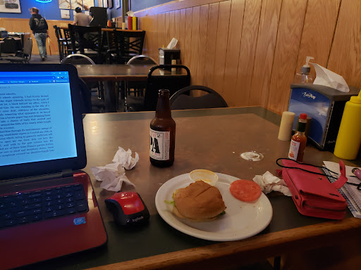 Great service, they let me chill on my laptop, kept the beer coming and didn't bother me at all. Shh, I even hit my vape with no issues. Lunch time came and went and everyone seemed to know each other, almost felt a Cheers (80's primetime t.v. series about a bar starring ted danza and woody harrelson and kristi alley) type vibe there. Food was great, fries were crispy and not floppy and sloppy...the burger was cooked just right with no mystery sauce. I will definitely return to this venue in future Mason City visits. I like that they are right next door to Northside Liquor and Vape shop, which makes the convenience super close and easy. The bartender, Morgan was super helpful and easy to talk to. Not bad for Mason City, I've been to "other places" (pun intended) where the service was bare minimum and atmosphere was...