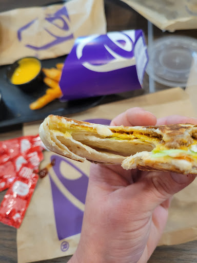 Read moreWe ordered from the kiosk and noticed one of them was broken and needed to be replaced. After we ordered, we didn't receive the drink that we ordered via the kiosk. We wnt to sit at a table and noticed that every table was dirty. We at about 2pm and the lobby only had two other guests. We were there for a while, and no employee came to the lobby to clean any of the tables. The food was warm, which was great, but my tortilla chips to go with my cheese dip were crushed and hard to eat. We even used the bathroom that had a sign stating they cleaned or atleasted looked at the bathrooms every 30 minutes. Again, we were there and never saw an employee go in the bathroom. When we did use it, it was dirty, and the tolet paper wasn't even placed on the roll. It was just sitting on the tank of the toilet. Also, if you are in the handicapp stall, you can see the other person through the gap in the stalls. When we tried to enjoy our food, the employees were talking super load, almost yelling, and using profanity. Also, before we left, two of the three employees we saw were hanging out with friends outside the front entrance blasting music. I used to be a shift lead at a fast food restaurant, and that isn't acceptable. I would not recommend this Taco Bell location. I have been to others and have never had such a...