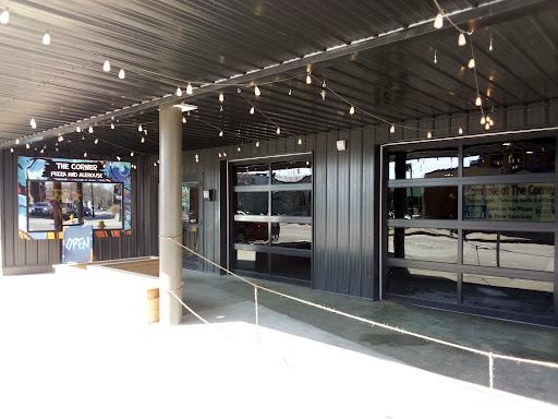 -The setting. The Corner seems to be trying to be a sit down establishment while operating like an "order at the window" place. It doesn't jive, for me. I do like the vibe of the restaurant itself, but the seats are really uncomfortable, and the place is freezing (there are garage doors in the front, and i's drafty even with them closed. I had to wear my coat while eating). I did like the information provided in the women's bathroom about letting the bartender know if you felt unsafe with your date and you wanted them to call a cab for you, and I liked how there was a board where people could grab a pre-paid slip for a slice if they couldn't afford one....