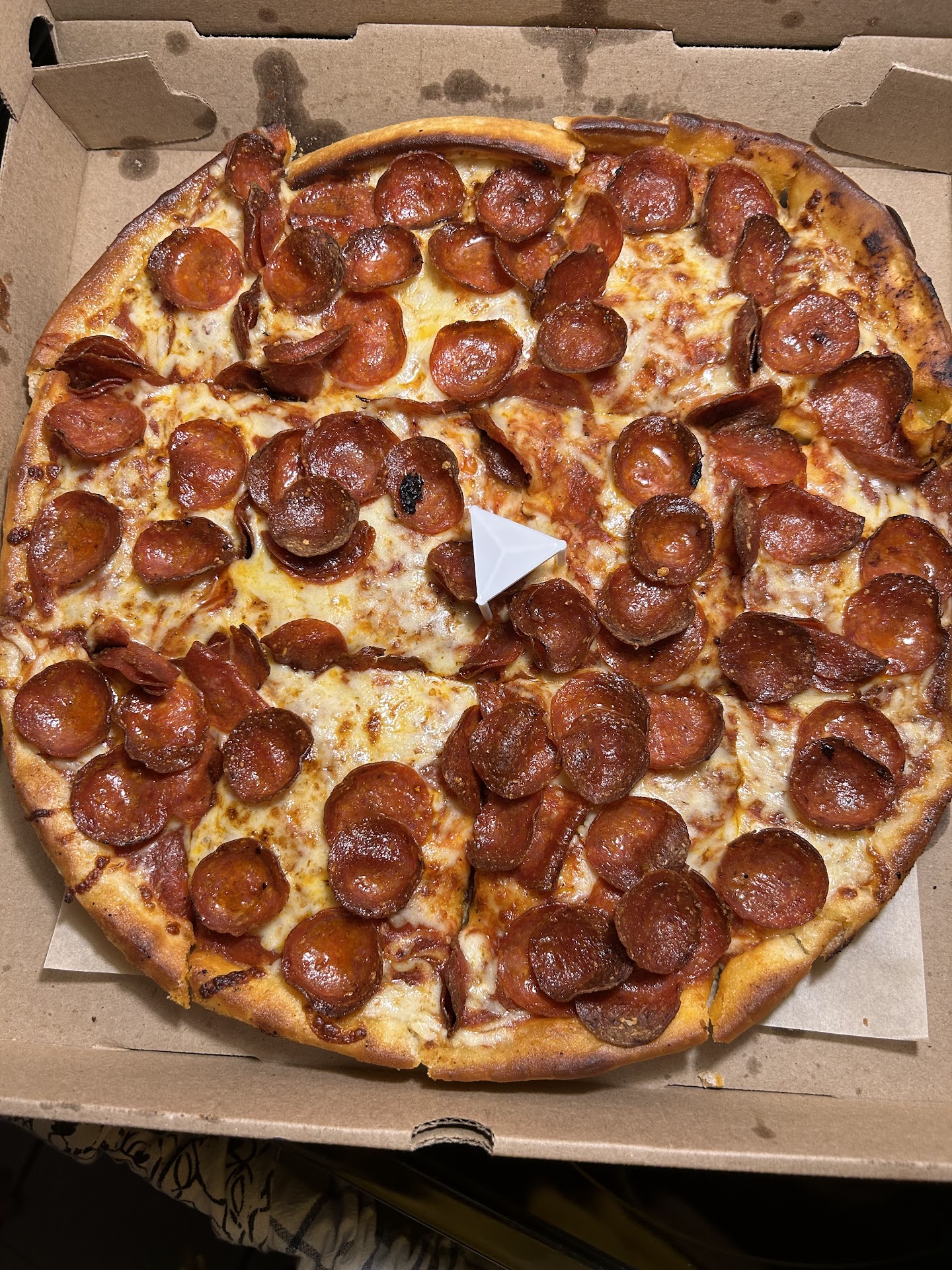 When we got home we cooked up a frozen pizza. It was pretty tasty, but that's a...