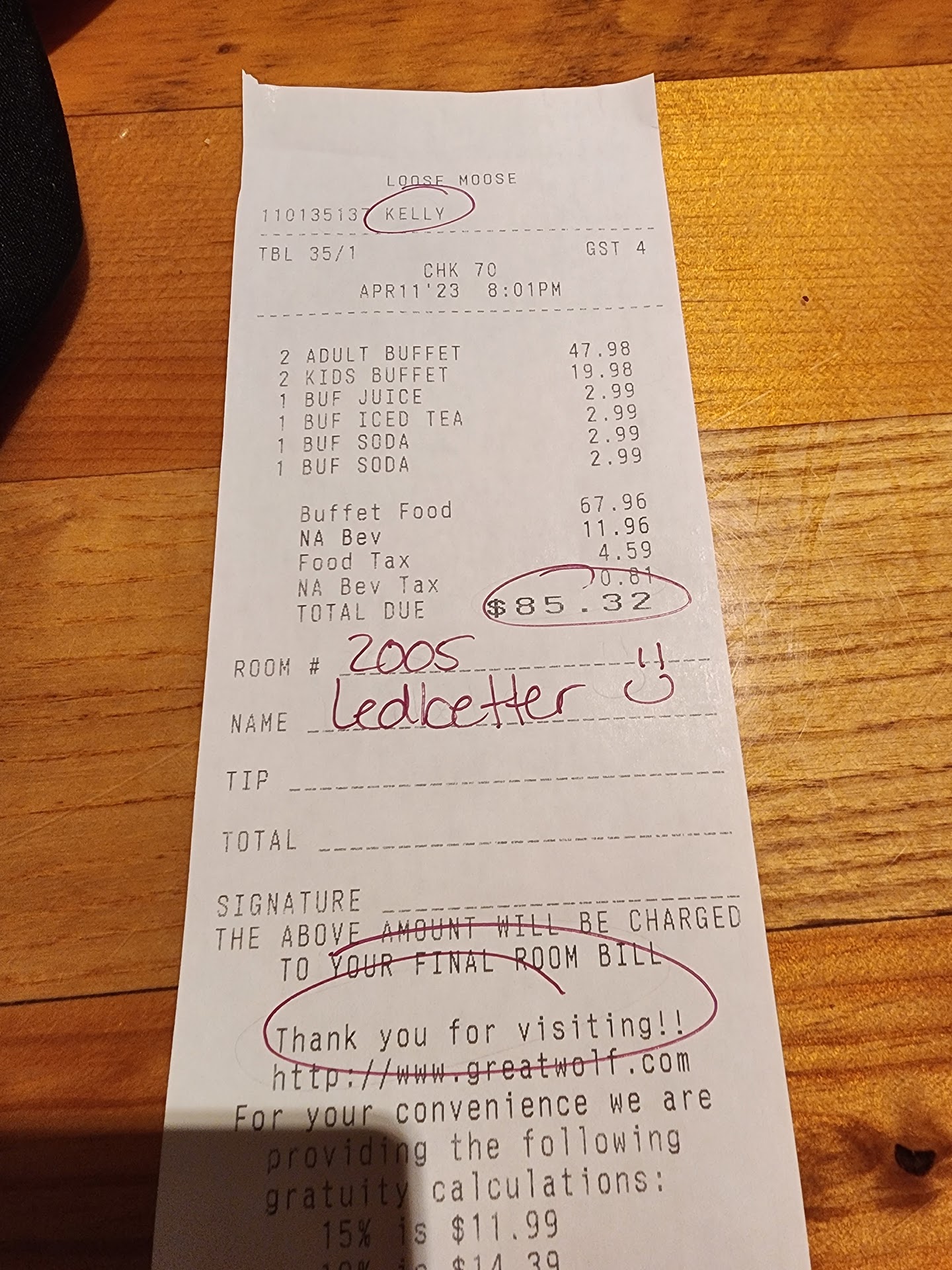 Read moreNever have I ever came to a restaurant & found a live bug crawling in my raspberries! Im beyond mortified due to the fact that I had already eaten multiple berries before seeing the bug & I have never seen this type of bug đ before! I was brushed off by management! I will not be coming back! This is unacceptable. The dismissive behavior by the restaurant management is unacceptable! Produce should to be rinsed especially when being served to the public!đ The restaurant manager was unavailable. The hotel's aquatics manager (Kory) was sent to our table & was very polite & professional. He resolved my the issue by refunding $50 back to my card since I had prepaid for the breakfast/lunch package. This solution was made by Great Wolfe Lodge not the Loose Moose...
