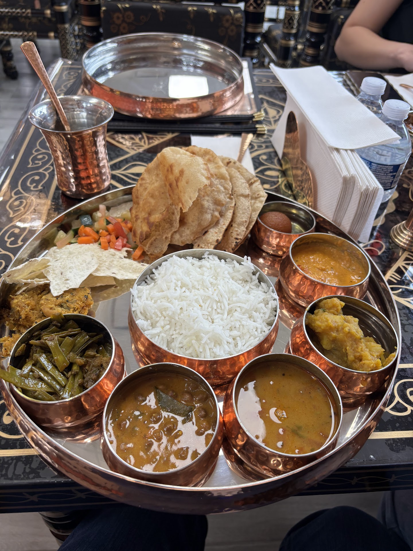 The food itself was underwhelming. It was served cold and lacked flavor. We ordered both thalis, and aside from one sabzi, they were identical—yet one was $2 more expensive. The thali is advertised as unlimited, but we were never offered seconds and 2 of our bowls did not even receive the first serving , we had to ask if something came in those bowls. Only then did the staff realize they had actually forgotten serving two items.