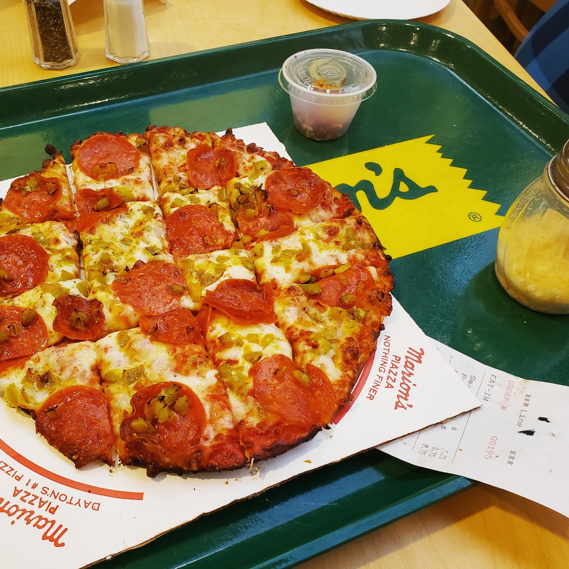 Read moreMarions is a family restaurant, you can have great birthday parties there, the 60 ounce pitchers of pop fill 5-7 glasses and there are 36 pieces of pizza in one large, perfect for groups. Gratuity is included in the prices, you do not have to clean up your table, there are bussers for that, you can just leave everything on the table. There are two lines one for food and one for drinks ONLY because young kids work there (it is a pizza place, think first job type kids would work there before/ while going to school) there's BEER at the BAR area only to be served by the workers that are of legal age (21) that is why there has to be 2 seperate counters. The salad is all hand chopped every morning, the salad dressing is not hand made, but I'm not sure what brand it is offhand. The pizza doughs are made by Marions also. I particularly like the spaghetti and meatball dinner where you get a salad and a garlic bread. They also have a lunch special M-F 11am-3pm which is buy one half of a small pizza with 2 toppings get a free 24oz drink for only 4.99 every topping after that will be I believe 39¢ add a salad for $1.20 :) and by the way 24 oz of pop the large, is the same as 2 cans of pop, if you think you want more than two cans of pop while you are eating then just buy a pitcher for $4.26 after tax You're welcome :) Also the pizza is fast only about 15 minutes to wait to...