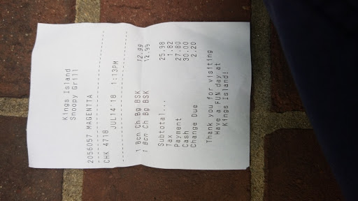 Went there on 7/29/22. Took my daughter and father to Kings Island for a fun day. We left early in the morning and drove straight there. By the time we got there we needed to eat and decided to try the snoopy planet grill. This was a massive mistake. My father and I got the cheeseburger basket, my daughter got the corn dog. I became very ill within a few hours. I only got to ride one ride with my family, and immediately after I became much more sick and had diarrhea. This was the only place we ate. 1 day later I have a fever and still using the bathroom. My father became ill later as well. My daughter is the only to have seemed to be ok. Ruined...
