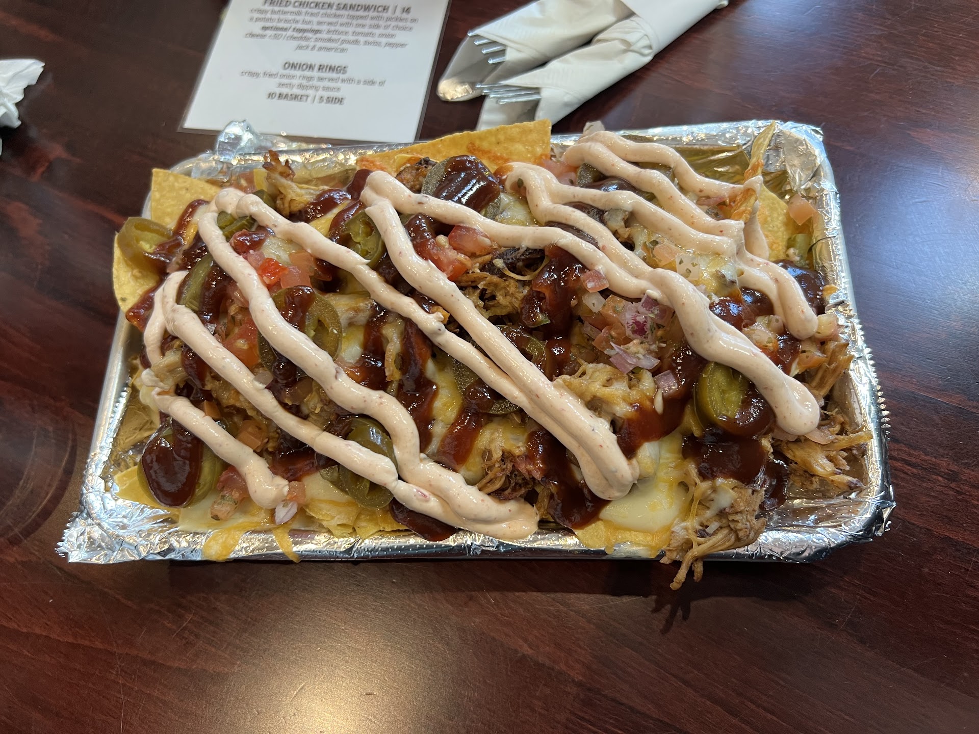 Read moreFirst-time visitor, went to the Mason location. Got seated, waitress took our order for drinks (Gamma Bomb & a glass of red wine) and appetizer (pulled-pork nachos). The server/runner brought out our nachos in about 5 minutes. When I said to her that we ordered a beer & a glass of wine also, she told me I would have to order that at the bar. ??????