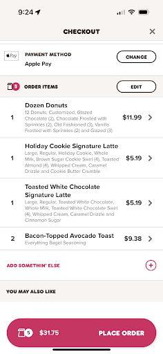 needless to say, im actually an avid starbucks coffee drinker and a gold member there, so i will go out of my way to go a couple more miles down the road for my chai latte i mobile order instead of stopping here to buy a couple donuts, which by the way arent even that great, especially since they toss them straight into a bag. just right off the shelf into the bag. dude, ya didnt even give me a napkin for my donuts!!!