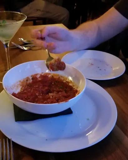 We came here for Valentine's Dinner. We have decided that our waitress was much of our problem. Our food was served luke warm and had very evidently been sitting waiting to be served. We ordered a gimlet and a chocolate covered raspberry to drink. These were both 5 star drinks. For apps we ordered a side salad with homemade ranch dressing, the meatball nirvana, and the loaded tot skewers. The ranch dressing wasn't my favorite but it was good The tot skewers were ok, but I wouldn't order again. The meatball nirvana was absolutely delicious. The only downfall to this app was that we were only given 2 very small pieces of bread and weren't able to eat all the sauce leftover. It should definitely be served with more bread or there should be a basket of bread for the table readily available (especially because the food takes a bit of time to arrive. Our meal start to finish was 2.5 hours)