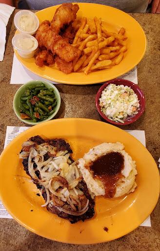 Read moreService and atmosphere are pretty much what you would expect from a small, local, greasy-spoon type of restaurant. My problem is that I don't know why I keep going there thinking, "this time will be different." My food, once again, arrived cold. "Swiss steak" was more like microwaved-a -long-time-ago chopped steak saved from the bin. Mashed potatoes also cold. Hot gravy poured over top, I guess to make the other items warmer? Why was my appetizer served (cold) with the meal, instead of before it? Why was my veggy the appetizer? Why did the guy who ordered after me get his food first? Oh, yah, because mine was back there on the counter getting cold. Why did I even tip? This time, I am fully convinced that this restaurant will not be getting any more of my money. By the way, I paid in cash. I did NOT "take care of a problem with a declined card by paying cash." I paid cash. No card at all in the picture, before, during or after. So I don't know who you think you're responding to about the card that was declined but it certainly was not me. Stop trying to discredit me by saying my "credit was declined." There was never a card involved. Cash only. Food was cold and gross, service was lousy, and I will never go back. I had just worked a long shift at work. I was exhausted and did not feel like making a case with the waitress. I just wanted to eat and go home. The problems I encountered were the absolute bare minimum expectations for dining out. Since a similar thing had happened several times in the past, I think it was time for an honest review. Also you spelled...