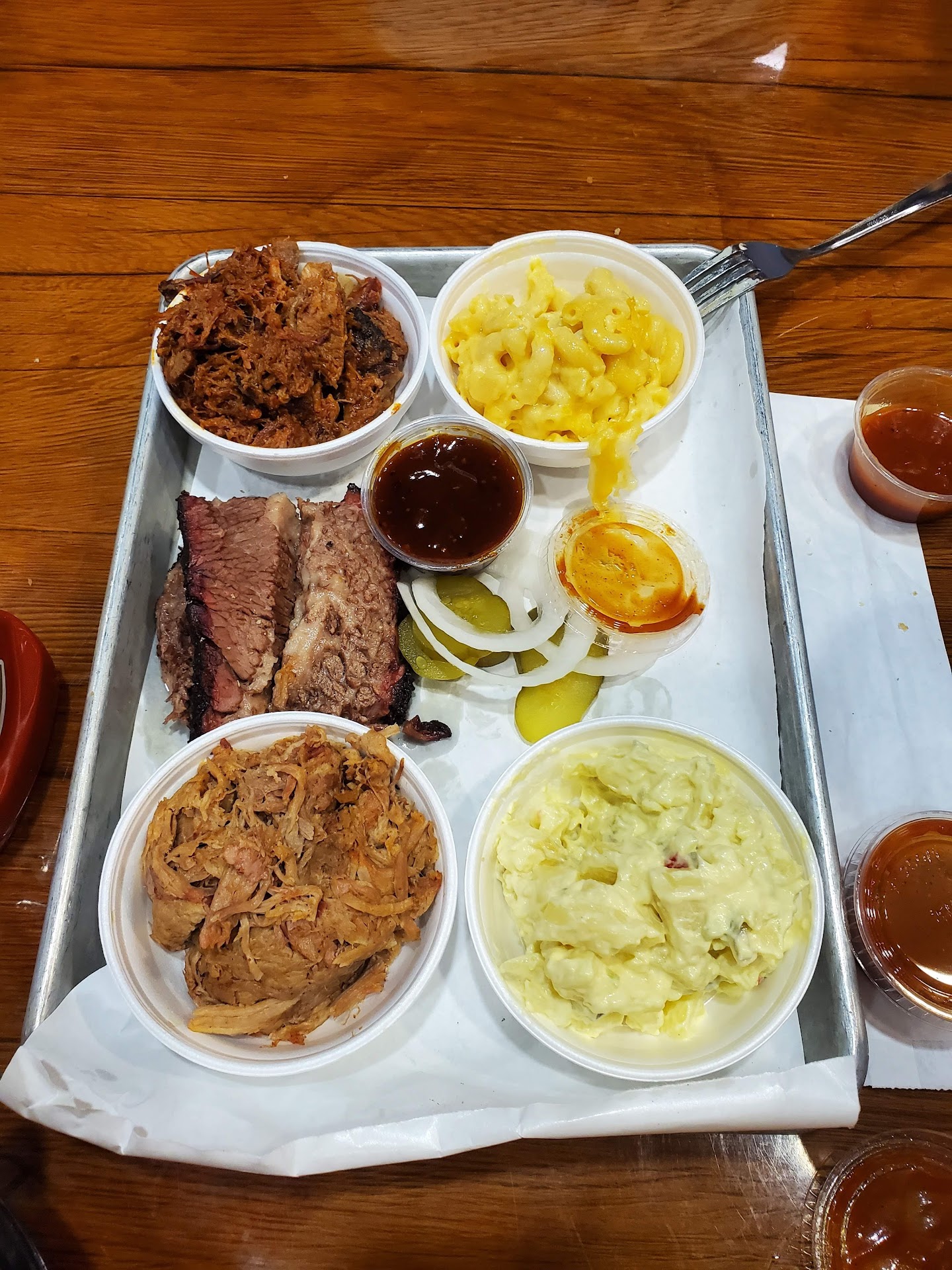 Read moreThere are two locations in Mathis. The one by the highway is a little more modern with a drive through and such. If road tripping to the valley or corpus it’s one of the last good places to get some Texas Monthly TOP50 BBQ. I can’t quite stomach 20 plus bucks for a lunch plate so I usually get a Large Chopped Beef on the gourmet bun if they have them baked up (additional 50 cents or something but a really great bun), and the wife really likes the big stuffed bbq potatoes! The creamed corn is an amazing side. I come from central Texas where the legends like tootsie at snows cook and this is about as close as it gets to that good stuff while down...