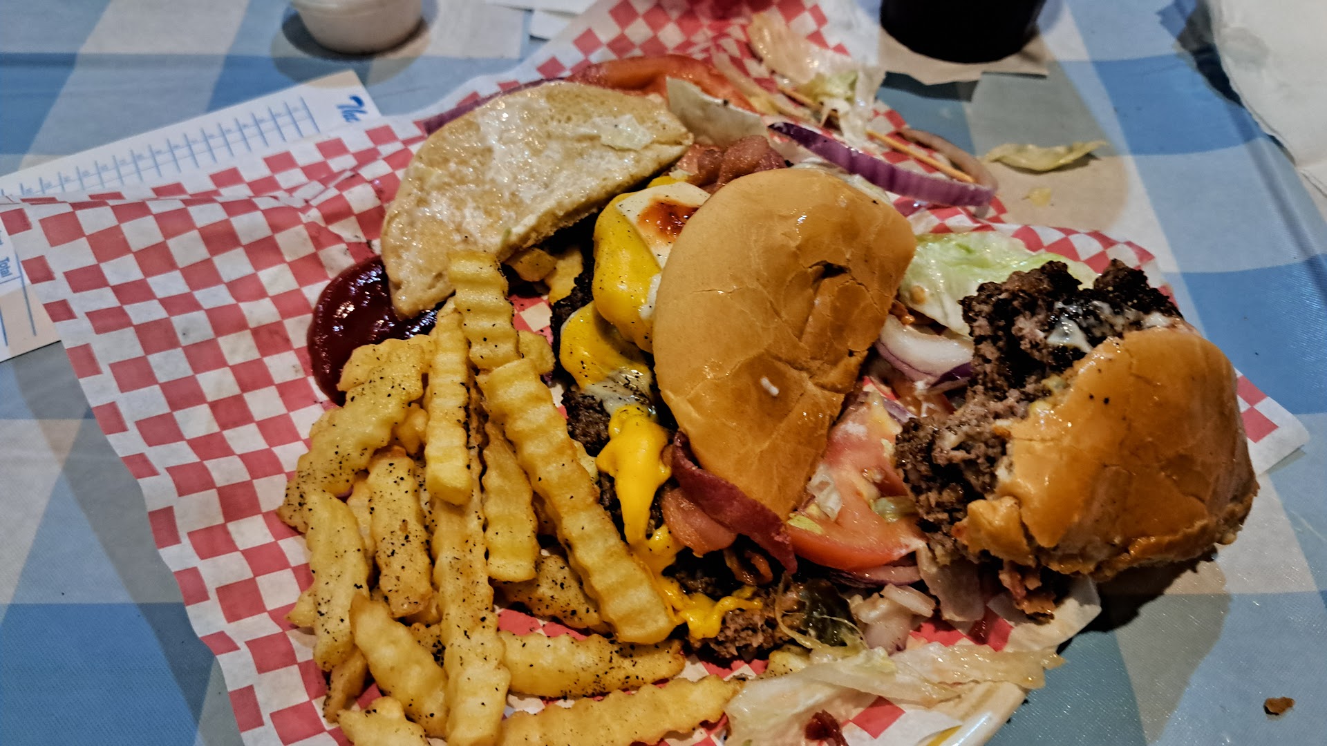 We had the double house burger - a THICK double burger with American and Swiss - as well as some mozzarella sticks with a great pull and flavor. The place is laid back and comfortable, with nice folks all around. The food is made to order, FRESH, and piping hot!