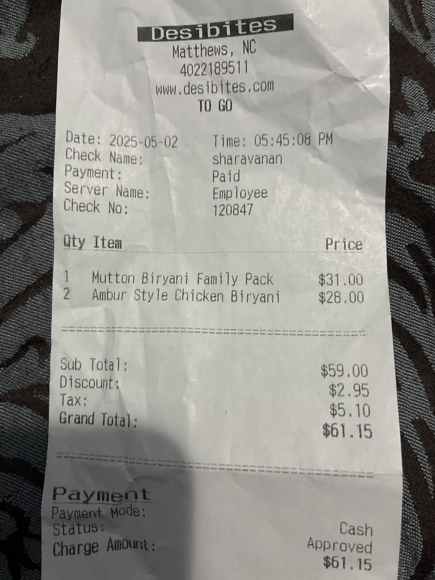 Itâs honestly disheartening to experience this, especially after being such a long-time supporter of Desi Bites. I sincerely hope the management looks into this matter and provides proper guidance or training to maintain the warm and welcoming atmosphere that Desi Bites has always been known for.