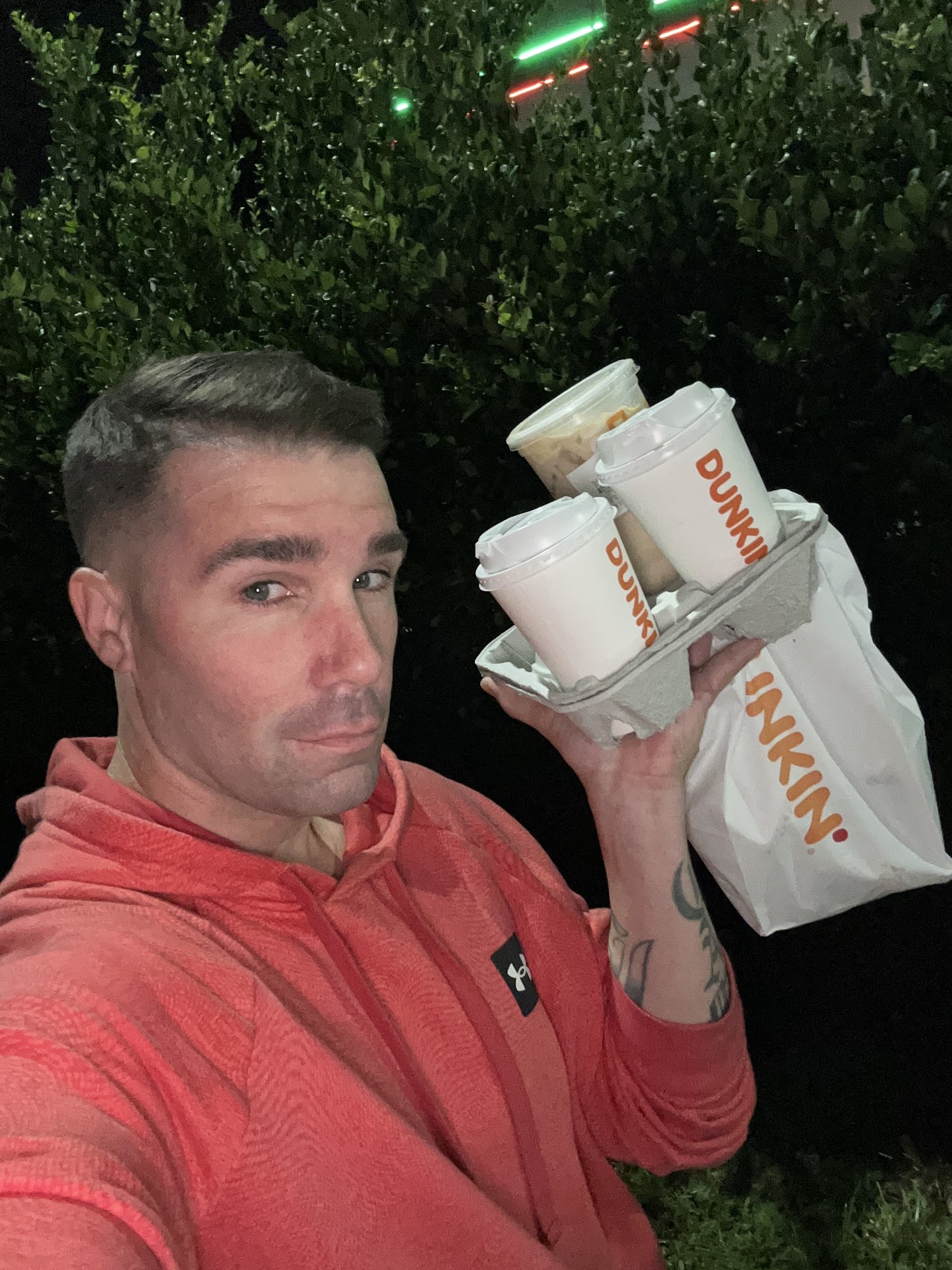 He basically says I can offer you Gatorade, sprite. Im like I just want a coffee, from a coffee place. So I ask my son if he wants a donut.