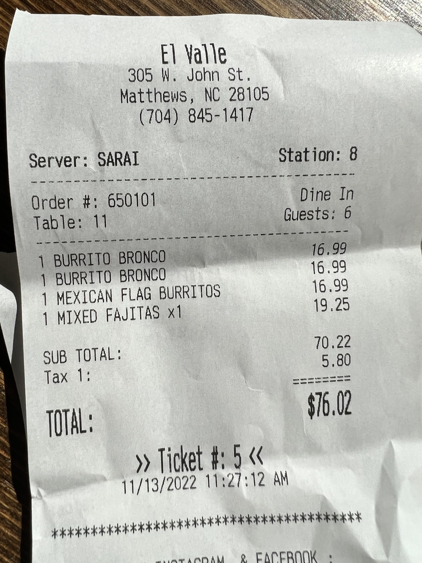 Read moreMy family and I had a very disappointing evening tonight at El Valle. Our food was delicious but the service was absolutely awful. The very first greeting was warm and friendly but I then asked about their beer selection and it was returned with a very rude response, almost as if it was annoying that I didn't know the menu. Following most of our food being delivered and after waiting several minutes for plates and our missing side, I had to get up and go ask the hostess to help us with both items as our waiter was no where to be found. Finally, after asking for our bill and then again waiting a lengthy time, I ended up flagging down another waiter who told me to just get up and pay at the register. Sensing my frustration, the waiter then told me to tell the manager. As I did this he began laughing as if "this happens all the time" while the manager gave a simple "sorry" while handing me my bill. With the opportunity for the manager to completely redeem our evening, I felt like there was no sincerity in the apology and he then did nothing whatsoever to try and retain my business. Sadly, I am not sure we will be back as again, the food was good but wow....really disappointed in the all...