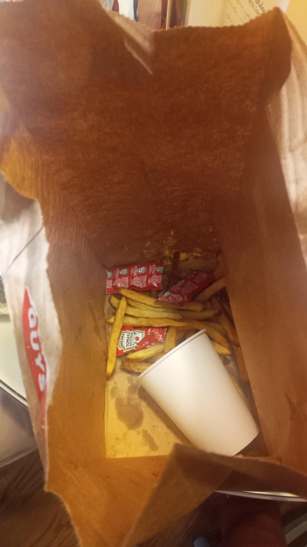 So we ordered burgers from this location online last night unfortunately. They were ready by and we were there 15 min before closing time. Made the classic mistake of not checking the bag before we left, we only got 2 of the 3 burgers we ordered even though we paid for and it was clearly marked on the reciept. 5 Guys is not cheap and for a store with 4 employees on staff and no customers expectations are that I would get what I ordered. Now when we discovered the mistake we called the location but they had since closed and we could only leave a voice-mail. Called again today and noone picks up there phone and no calls have been returned. Next step corporate and they couldn't care less about there customers said there is nothing they will do. Heading back up to the store tomorrow. The 2 burgers we got were good otherwise. If you want to change your stars all I want is my issue resolved. Until then there are several other local burger joints that will be getting my...