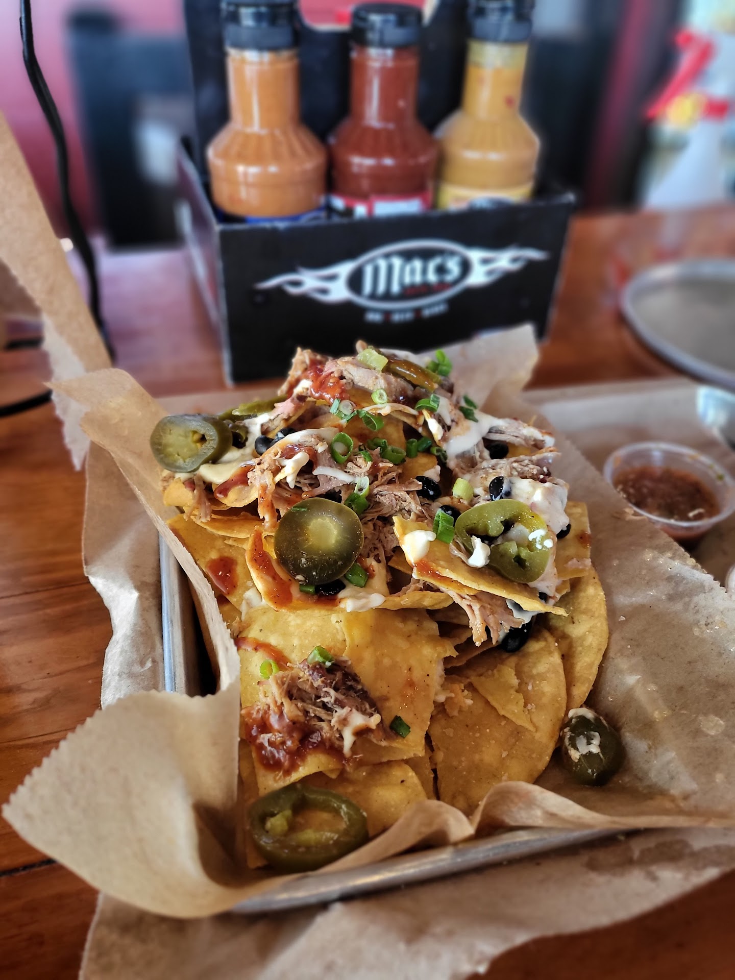 Read moreI'm just adding on to a prior review. I was invited here for a belated birthday outing with some friends. We sat at the bar on the far end. We had a few beers and some cocktails, and our bartenders name was Lauren. Phenomenal bartender and the hostess with the mostest. Great personality, very engaging and attentive. We had Brisket Nachos, a Cuban, and a Smokehouse Dip, which I ordered as Lauren highly recommended this particular sandwich. It came with a nice healthy serving of smokehouse au jus, which I also used on my garlic, Parmesan mashed potatoes. All of the food and appetizers were very nicely done. The service(Lauren) and the vibe are exceptional in a laid-back relaxing atmosphere. Just a really great place to kick back, relax, and enjoy some really good food, appetizers, and beverages of your choosing. I'm meeting a colleague here as it is mutually accessible for both of us. I've been to the original location of Mac's Speed Shop on South Blvd on any number of occasions. They've done a phenomenal job of replicating that experience and vibe. We met in the middle of the afternoon on Friday, and they still managed to have a respectable turnout for that time of day. We split the pulled-pork nachos and had a beer(or 2) and a cocktail. The beer and cocktails were outstanding, as were the nachos. It's a very vibrant and lively atmosphere with plenty of seating and TV's available. Yet, you could actually have a nice conversation without being unnecessarily overwhelmed by the noise. The staff members were very pleasant, helpful, and friendly. Rachael (I believe) was the on-duty manager and was exceptionally kind when speaking with her. The restaurant was exceptionally clean, as were the restrooms and exterior of the building. I look forward to returning to this restaurant and any other restaurant that has Mac's Speed Shop on the building. If you took the time to read this review, please take a 1/2 second and click...