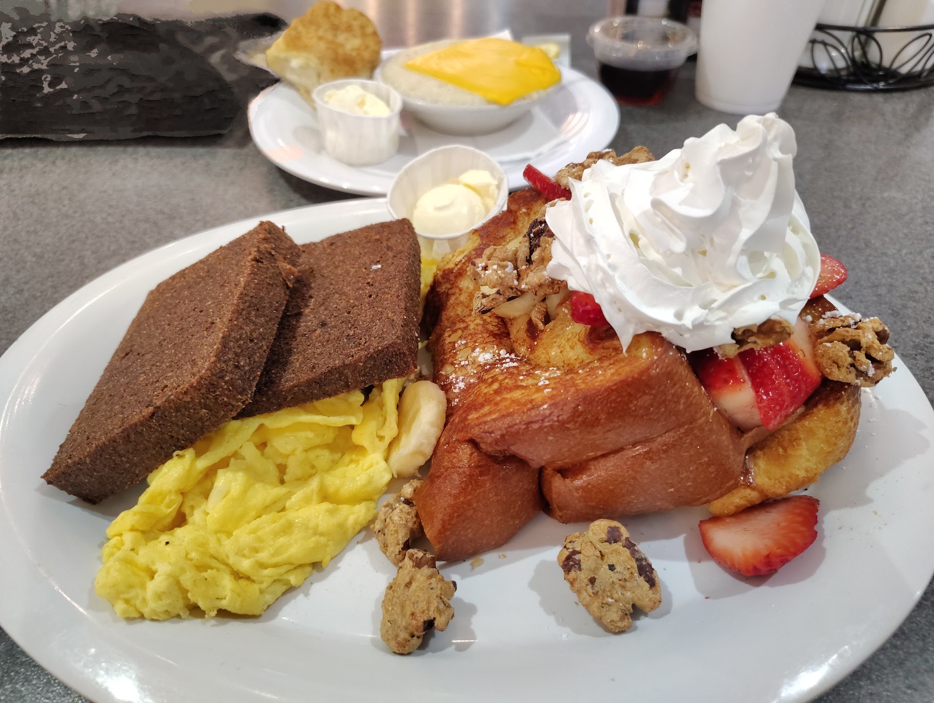 Read moreI didn't fully enjoy my food. It Was recommended to me by the waitress at the bar to get a lumberjack meal with a side of grits because of what I wanted to try. Initially I told her I wanted a grits eggs liver mush meal with rye toast but then I saw some French toast come out and she said I could do the lumberjack meal that would give me everything in the regular meal that I had just ordered with the option to choose whichever French toast as a short stack that I wanted and order a side of grits.