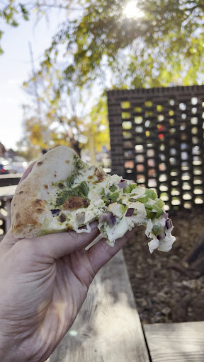 The restaurant is a small shack you order from and sit outside. It's nestled inbetween two other buildings, so it may be hard to find at first. There is some covered seating thanks to the restaurant next door, but do be aware of the weather in Matthews.