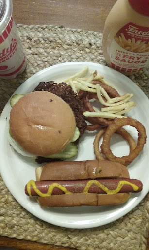 Freddyâs, what can I say that hasnât already been said about this beautiful establishment, first let me say that I come here twice a month, and when I do come through the drive-thru at least twice. Letâs get into the food part of this review, Iâll start with the dogs, oh the dogs, the old saying goes âall dogs go to heavenâ, well in the case of Freddyâs all dogs come from heaven because let me tell you they taste absolutely heavenly. That crisp crunch of the fluffy bun, the juicy flavor of that all beef dog, itâs perfection. Next up the French fries, when I eat these I eat them by the handful, the perfect salty seasoning, and with the most beautiful tasting fry sauce on the planet, itâs truly to die for I mean this quite literally, I would die if it meant Freddyâs could stay open for the rest of the world until the end of time. Next I will discuss the signature Freddyâs Steakburgers, that juicy beef patty combined with American cheese will absolutely just melt in your mouth, I legitimately had an orgasm inside the restaurant, even that couldnât stop me from âfinishingâ my meal. Finally I will discuss that beautiful sweet custard, on a hot summerâs day I will always go into Freddyâs for some of that delicious treat, I would sit like a dog if it meant someone would give me this treat. In conclusion, thereâs no better place on Earth than...