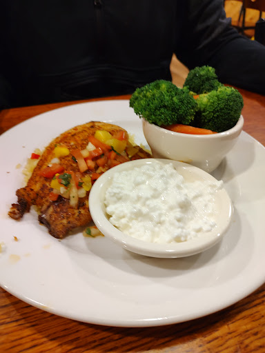 The only thing that I can recommend would be the french fries. When we came inside, the hostess greeted us with a mouthful of cookie as she was stuffing her face with cookies. Then we were sat down. We ordered our drinks by a smiling waiter, and what was supposed to be a cosmopolitan tasted Like watered down Tito‘s.The second one that they brought me tasted like cranberry juice. I drank Neither. The waiter served us lukewarm at best meals. We had to wait several minutes for him to come back around to ask him for silverware as there were none on the table. I asked to speak to a manager and minutes later a manager come to the table and I told him what we had experienced coming into and up to the moment of speaking with him in the restaurant. By then our meals for dinner were completely cold. The manager took them back and my husband received fried catfish that was hot out of the fryer. He did enjoy his fried catfish and french fries. when I bit into my Power fajita bowl, it had lukewarm meat and cold broccoli and rice. Please keep in mind that the meat was not cut in a fajita fashion. It was basically pre-cooked sandwich meat as the waiter told me it is in fact the meat that they used on their sandwiches as sandwich meat, (i.e Philadelphia cheesesteak) so I would not be able to get a fajita cut and no possibility of it being cooked to a medium rare. This should’ve been a warning sign to me to not order the Power-bowl. But being hungry, I did it anyways. Our waiter was friendly and the manager tried to help. We will not be visiting this place for a...