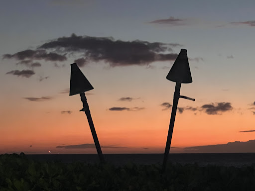 If you’re coming to simply enjoy a beautiful sunset, then this is your place. I believe it’s one of the few, if not only, beach front bars in Maui where you can enjoy the sunset with a drink and it’s not directly connected to a hotel. The seating is arranged to where everyone has a good view but they do fill up quickly around the time (I would suggest getting there at least an hour before). Now the food is a bit mediocre. We went once for dinner and I had the flatbread that was recommended by the server. Which was pretty good but was quite small for the price. Next time we went for happy hour so just snagged some coconut shrimp to try and, again, it was okay but nothing to write home about. The service was good at the tables, but we found the service to be much more attentive and engaging at the bar - even though it was busy. Parking is across the street in a free lot but spots are very limited. If you’re staying in the Hilton Maui Villages, you only have to walk across the street (make sure you have your room key). Keep in mind it’s still fairly new so hours fluctuate. When we came it was open daily from 3-8 with a happy...