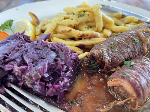 The food was fair...nothing spectacular. The salad was underwhelming, the schnitzel portion was good, and the au-gratin potatoes were passable. The food came out fast (I was the only one there) but I still felt a little rushed. When they picked up my dinner plate, the bill was quickly laid upon the table, even though I wanted another beer (which I got).