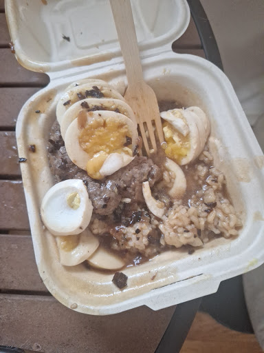 Loco moco has cold, not fresh made, boiled egg on it instead of fried. Said it had chantrelle mushrooms but had like one chopped up brown mushroom, definitely NOT chantrelle becuse those are yellow. A tablespoon of gravy. Asked for more gravy got an oily broth that seeped right through the cardboard container. Hope it wasn't an endocrine-disrupting seed oil but probably was because I cried after eating it and my mood was shot for the rest of the day. But maybe it was just the way I was treated and lack of transparency about the food. Brown rice, which is higher in arsenic than white. They forgot the mac salad that was supposed to come with it.