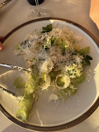 The Broccolini Salad was one of the best vegetable dishes my wife and I have ever had. We absolutely loved it. It's served warm and the broccolini is shaved and all the other ingredients are mixed in. Absolutely incredible.