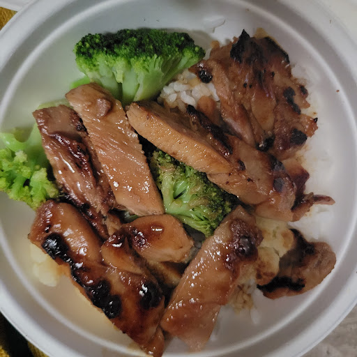 BBQ Chicken My go-to dish. I received 3 big boneless and skinless thighs, pounded flat, seasoned perfectly savory, flat top-grilled flawlessly, that resulted in juicy, fork-tender poulty goodness. Way better than the version at Pearl's Korean BBQ, I might add. The 2 huge scoops of rice were sticky and moist, and scoop of macaroni salad had the right amount of salt & mayo. What a deal!