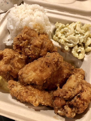 FOOD: Miso Buffalo Wings Plate I had to try this first as I love chicken wings. The plate consisted of a mix of wingettes and drummettes, big scoop of white rice, and a scoop of pesto macaroni salad. The wings were amazingly full of bold miso and buffalo flavors that went all the way to the bone, though there was no spice at all. They weren't crispy like traditional fried chicken wings as the thick sauce doused most of the crispiness, but there were a few crunchy portions of the skin here and there. The pesto mac salad was really good; a nice change from the usual mayo-slathered concoction that accompanies most plate lunches, but was a bit oily. Oddly, the oil also found its way under the wings which were in a separate compartment of the takeout container from the mac salad. The mound of white rice was perfectly steamed with no mushiness or dryness. Highly recommended for the chicken wing fan.