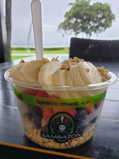 We had mixed experiences at this shop. The ice cream was absolutely DELICIOUS!! Some of the best coconut ice cream I have ever had and the Kona combination flavor was also divine. The coffee was pretty good, but not amazing. But when we had to eat there for lunch during a storm we were very disappointed with the food. I had a chicken caesar salad and the flavor was fine but the chicken was extremely chewy. My husband had a tuna sandwich that he also said was just ok. And then of course, everything is expensive. We also had the ham and cheese croissants for breakfast one day and the croissant was very yummy! So just sort of hit or miss but if you want ice cream, it’s...
