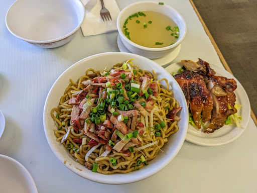 FOOD: Dry Mein The best on Maui! This is what they're known for best. Goes great with Aloha shoyu and lots of black pepper. Topped with bean sprouts, green onion, and charsiu. Comes in three sizes - small, large (my fave), and extra large. It comes with a small cup of clear broth that's very lightly flavored and used for dipping the noodles in, but I sip it.