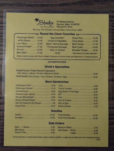 Ā Ā Ā Read moreWe needed dinner before our flight on a Sunday and other places had a long wait or were closed (lots of restaurants are closed Sundays). Ended up here because they were open and not busy, and we were pleasantly surprised considering it's unassuming appearance from the outside. Really decent prices (I certainly didn't see anywhere else on the island you can get a BLT for $6.50!). Our fried rice with sausage for $15 was the most expensive thing I think, and was a huge portion and delicious! While it's a basic diner without a lot of flair, Sheik's was just what we needed! Fast and friendly service. My only issue was the cleanliness of the washrooms. The windowsill was black with dirt and things like that make you wonder about the cleanliness of other areas...