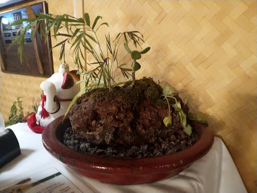 ATMOSPHERE: Located in the front of the Maui Seaside Hotel. It reminds me of your typical grandparent's dining room but on a larger scale. Old decor, indoor plants, bright lights (thankfully not fluorescent), and ceiling fans abound. It was really quiet when we got there at 5pm as there was no background music, no TV's, not even a bar. There are big glass windows with a pleasant garden view. Despite the restaurant being at the front of the hotel, the view of the parking lot is hidden by a high lava rock wall. It's a mix of table & booth seating and they're able to accommodate large parties and private events.