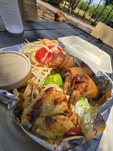 The place immediately surrounding it has so much potential. It was a really nice cool breezy day, palm trees swaying and everything. But most importantly the food was yummy and the woman in the truck was super nice. I ordered the papaya salad/shrimp egg roll combo and she let me add a side of chicken satay for a few dollars extra. It was the perfect balance and amount of food for the value. Food came out quickly. It just had a vibe...ya know?