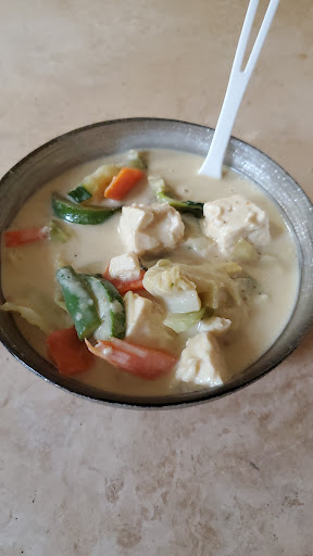 I have driven by this place countless times. Finally I stopped by today to see what the deal is. Its basically a food truck lot with outdoor tables and chairs in the shade of a large tree. The mood was reminiscent of old Hawaii. The food truck was clean, the employees were friendly and informative. I am a strict vegetarian and they offered to cook my meal in a new pot which I really appreciated! I ordered Green curry and rice. They gave me a medium/spicy option so I decided to try their spicy version which turned out to be exactly the right amount for me (spicy on the tongue but I'm not crying). The price was reasonable.. considering that most places that brag about being farm to table like to reflect that in the bill. I waited in the shade, cooled by a breeze, for less than 15 minutes. The portions are generous, enough for two to share. So for $14 plus tip I fed two people! I've tried a few Thai places on island and boy.. I have bee seriously disappointed. The first spoon of the green curry was an explosion of delicious, symbiotic, and delicate flavors. The veggies were cooked perfectly, still retaining their fresh color and texture. The balance of veg to sauce is perfect! I'm so happy I finally stopped by this place. I can't wait to try the rest of their menu. Definitely a Thai experience...