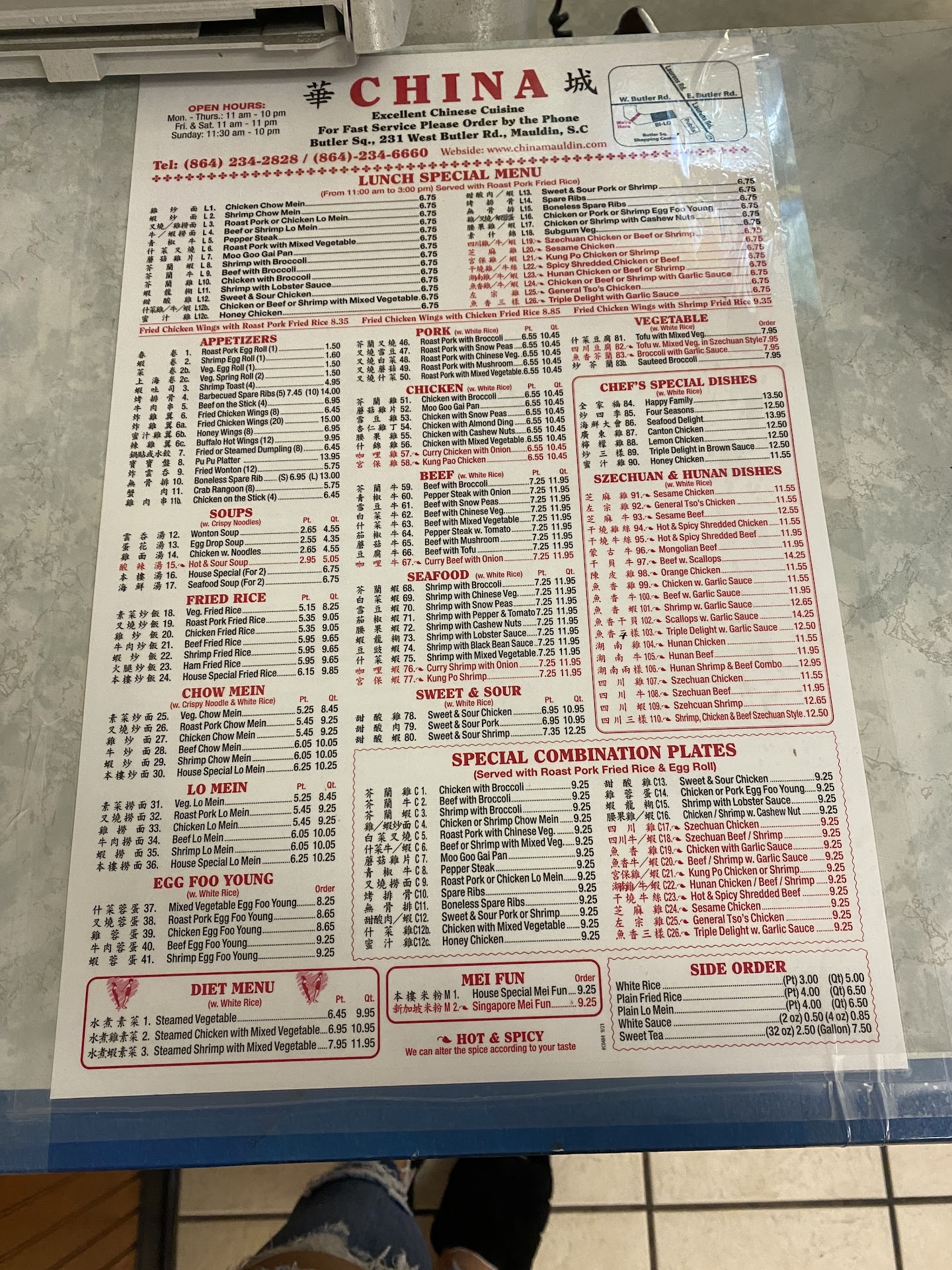 I called China Restaurant to complain and after being told the owner was not there, I had to tell the phone person my story, only to be handed off to the on-site manager to again tell my story .. only to be handed off to the owner (who must have just arrived!) who didn't pick up at all. So I just hung up after being hung out to dry on "hold".