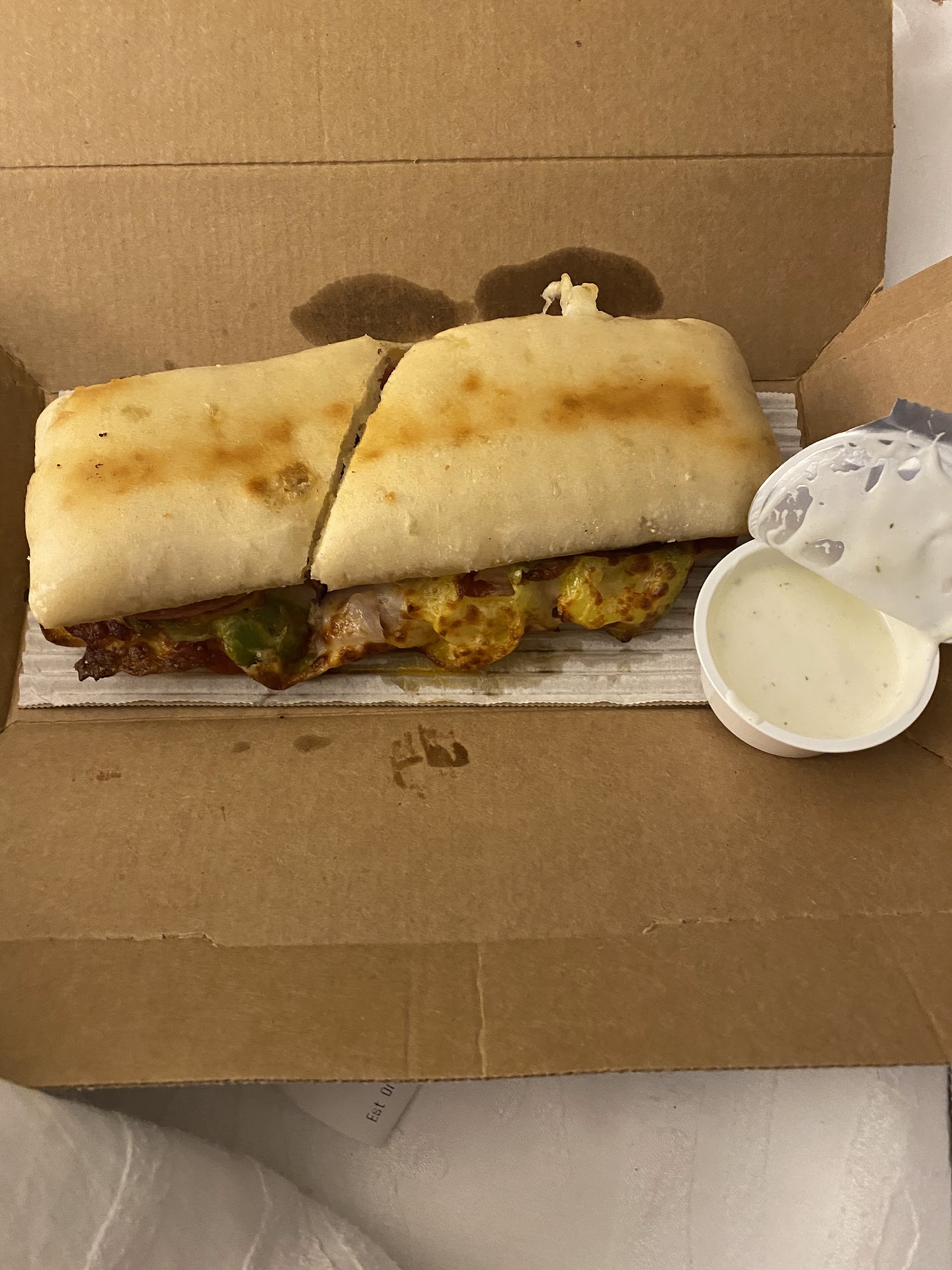 It's Saturday night after 9pm and you're craving a piping hot pizza. You've had a few drinks so it's a good idea to have your pizza delivered. Who do you choose? Dominos? Papa John's? Tough decision between the two major players but I chose Dominos for their app's simplicity and precise tracking information. I placed my order for a large 3 topping pizza through the Dominos app at 9:40pm and got a 21-31 minute delivery commitment for $18.89 plus tax. Nice! My overpriced hot pizza will be delivered by driver Nicholas at 10:15pm at the latest! The app tracking stated that the pizza was inspected for quality at 10:02pm and was in route for delivery. Right on schedule! Nope! Not so fast. My $18.89 cold pizza arrived at 10:52pm. 49 minutes after it it left the oven. After tipping driver Nicholas I'm $25 out of pocket for 6 slices of cold pizza. Ouch! Whoever inspected the pizza for quality at Dominos should have noticed that the toppings were nearly non existent. Nope! Mauldin Dominos made the decision to deliver that cold pathetic pizza to my home address. Dissatisfied? Absolutely! Lesson learned? Yes! Next time I order a pizza for delivery I'll choose Papa John's....