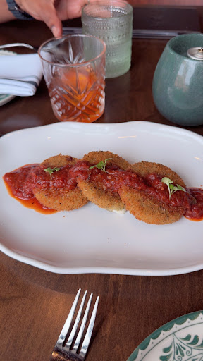 As for the negatives⦠the food and the price point are not aligned. Youāre paying $26+ for entrees, but the pasta is giving boxed and the sauces all gave jarred. Which is crazy, because they claim that itās all scratch made. We started with the mozzarella. It was aggressively okay, it wasnāt that hot, the breading wasnāt super crispy and the sauce was lacking in depth. Iāve had better fried mozzarella at Olive Garden. For our entrees, I had the chicken parm with the garlic confit parmesan potatoes. The cheese on top of the parm had the saddest, most uneven melt I have ever seen. It looked like someone sprinkled some shredded grocery store mozzarella on top. It was dressed with a salsa verde and balsamic, which didnāt add anything to the dish. Itās a classic, maybe just focus on executing it well instead of trying to jazz it up? The potatoes were so bland it made me sad. While garlic confit is supposed to be subtle, I donāt think itās supposed to be so subtle that you have to question if itās there? Also, terribly under salted.