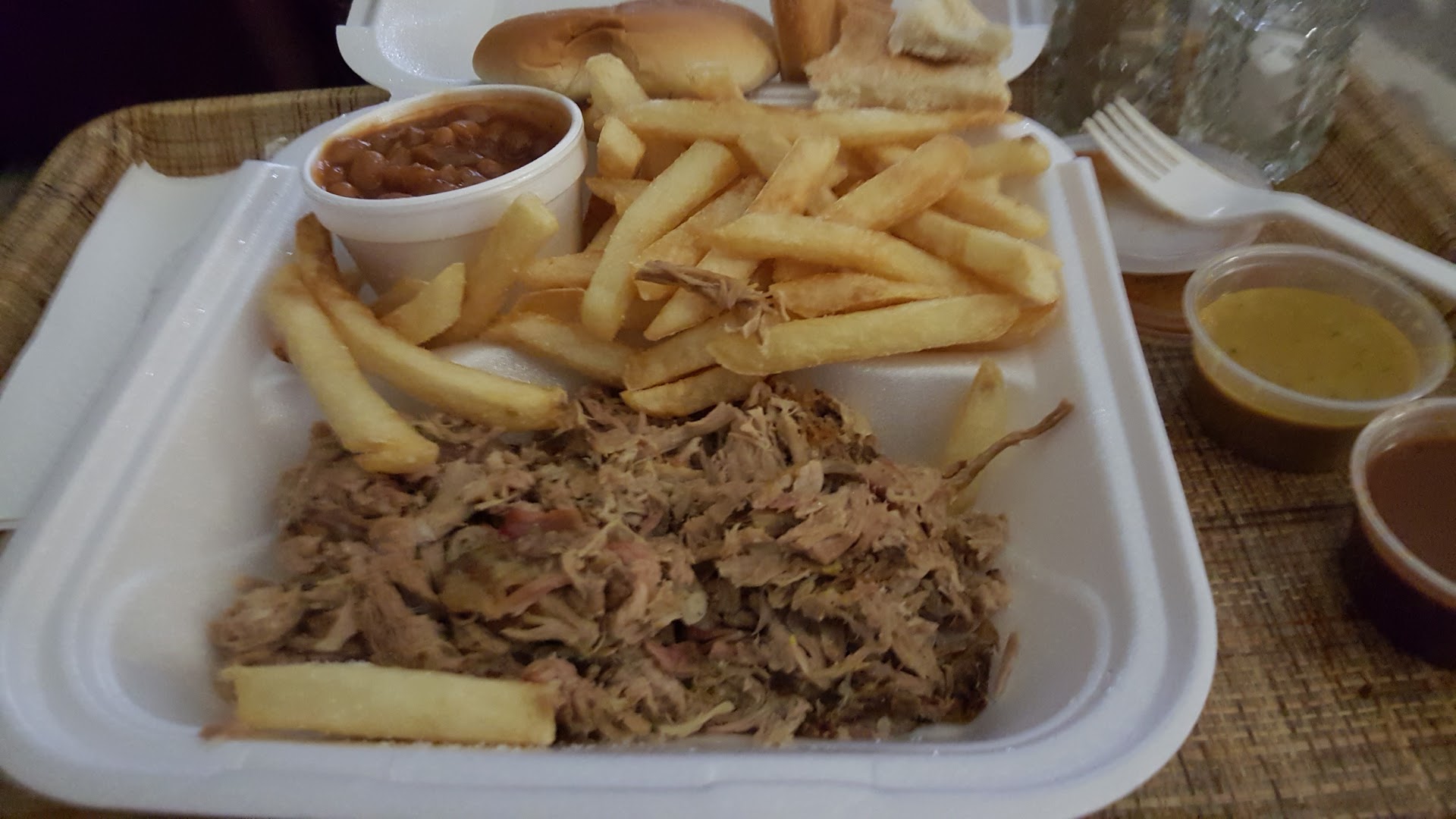 Ā Ā Ā Read moreMy first time visiting the new location. I walked in and was immediately greeted a male with a man bun. (Bun...no pun intendedš·) he was pleasant, offered great customer service and knowledgeable of the menu and sauces. I tried the mustard, Which is my general favorite. It was a tasty sauce. The meat was fresh, tender and juicy but I would prefer a bit more flavor-perhaps a dash of salt would ground that smokiness. I know, you're thinking that's what the sauce is for. But remember, a good meat will always make sauce...