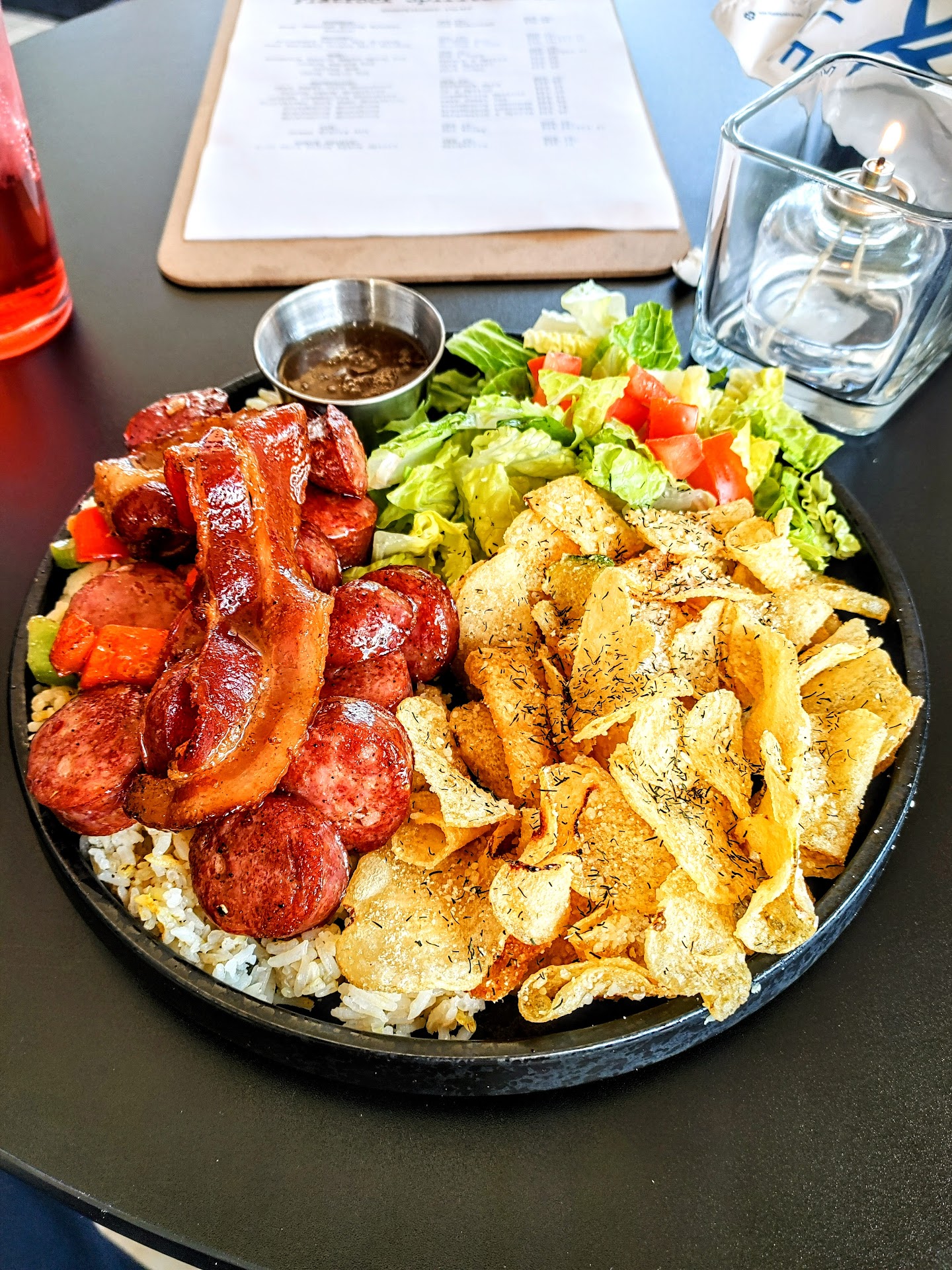 YOU NEED TO GO TO FLATROCK ASAP! Before diving into food and drink I want to touch on the service, our waitress was incredible…courteous and polite, insightful about the menu, and checked in on us throughout our meal to make sure we were okay without being too over bearing! Started off the night with a lavender infused lemonade which was probably the best lemonade I’ve had in recent memory. As for food, I ordered the Garlic Butter Steak Tips, which came served over jasmine rice with mixed greens on the side. Steak Tips were tender and flavorful, just the right amount of garlic butter not too overpowering. But the real star of the show…the truffle chips. Kettle chips so they had a great crunch, subtle truffle flavor, with Parmesan dusted on top…out of this world! Please if you are looking for a delicious meal stop by Flatrock at Fallen Timbers, you won’t be disappointed! We will definitely be back again to explore more...