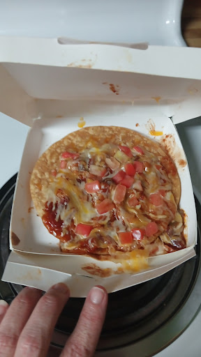 Read moreHighly dissatisfied! I Purchased a #4 Mexican pizza with two Supreme tacos and root beer. I Watched the window passer full the drinks and his hands were touch our pop foam. He passed us our drinks with a quarter of it missing anf with pop residue all on the cup. I rather not have sticky hands or cup slide out my hand..I asked him could he remake them, him and another employee argued with me..He finally remade them with less pop residue on the cup and full. He also watched his hand this time from touching the foam, So I know he knew he touched it the first time. As for my food I wanted a sub loco taco for the two Supremes taco that came with..Thinking I would get two loco Supremes ..I got to regular loco tacos..And my Mexican pizza was prepared terrible... I'll give it another go a couple...